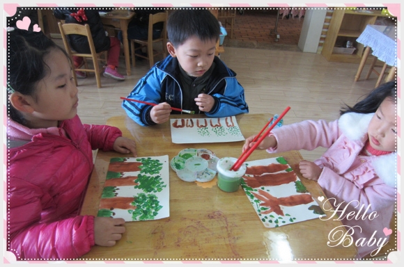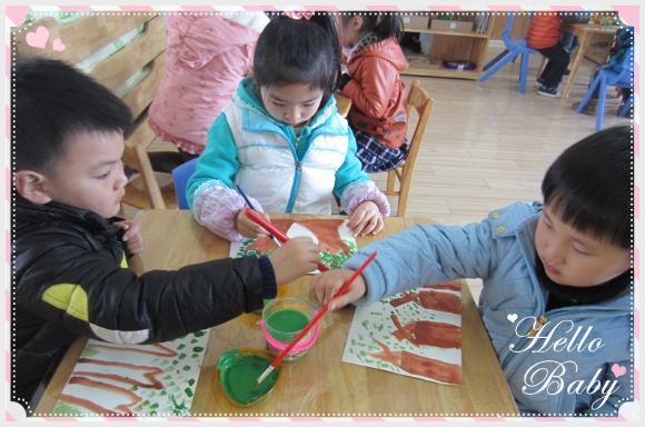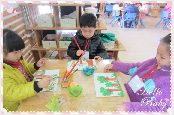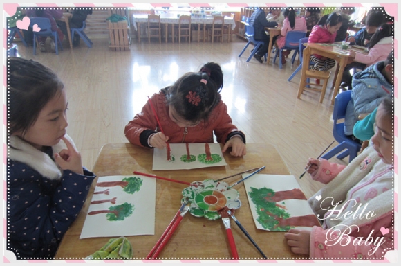 【大一班】水粉画《春天的小树林》 发布人:陈珊珊 发布时间:2014/3/20 10:46:39 春天的小树林里有什么呢?树林里的树是什么样子的? 除了小树还会有什么?你想画一个什么样的小树林呢? 今天我们就来画一画我们眼中的小树林。 快来看看我们的精彩瞬间吧!