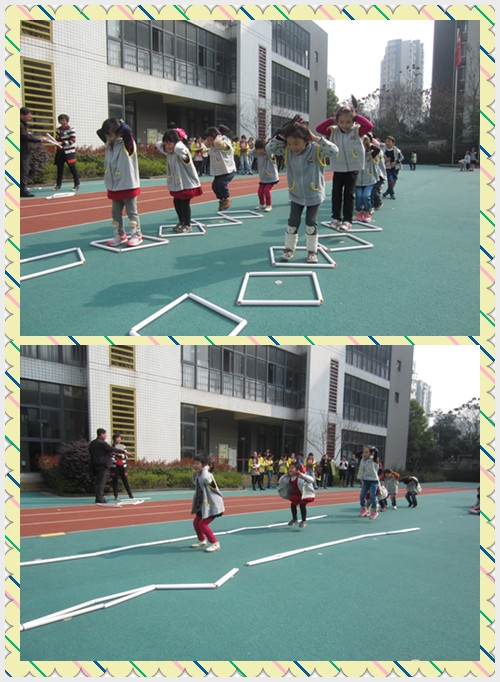 建实幼阳光健体组观摩及教研活动 发布人:陈珊珊 发布时间:2014/3/20 13:39:05 2014年3月18日,我园开展了本学期第一次健体组教研活动。活动中依次观摩了徐杨老师的中班体育活动《小青蛙学本领》、伍婉君老师的中班体育活动《碰碰车》和张慧老师的大班体育活动《小小跳水运动员》三节体育教学活动。 本次开展的体育活动都是原创的,活动中也运用了很多新颖的器材。因此,本次研讨的主题是“活动中使用的新颖器材是否合理恰当?有没有充分的挖掘器材本身的价值?这些器材还可以怎么玩?”教师们带着问题进行观摩,活动结束后执教的老师进行现场说课,教师们分组交流、修改、整理完善,紧密围绕着教研主题,帮助授课教师分析教学活动中的优势及不足,并提出了中肯的建议。最后在教研组长和专家的指导和帮助下,我们总结归纳了器材的多种不同玩法,梳理了教学环节设计与教学目标制定之间的关系,以及活动中有效策略的运用。 通过本次教研活动,教师们都感概获益匪浅!相信今后教师能设计出更好的健体活动促进幼儿发展。
