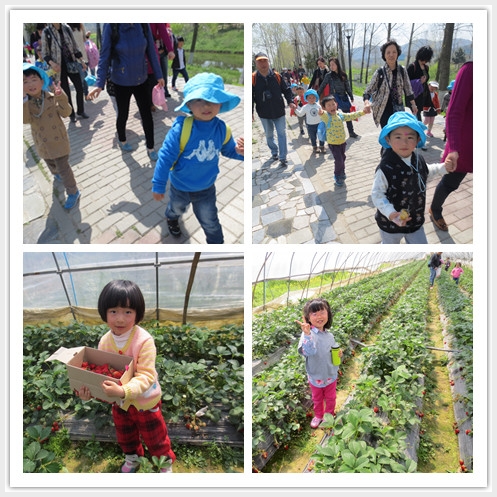 【小六班】快乐亲子游 ————快乐亲子游 发布人:晏海滨 发布时间:2014/4/3 15:26:52 今天,天公作美,春意盎然,我们小朋友开始了愉快的春游活动。一路上孩子们说说笑笑,显得格外高兴。到达目的地后,孩子们更是开心,他们采花、摘草莓。在草莓园,一个个又红又大的草莓真是诱人,不一会儿,大家都有很大的收获。玩累了以后,就打开书包,开始吃自己带来的东西。小朋友们把自己的零食你分一点,我分一点,在一起欢乐的品尝着,脸上露出甜甜的笑。孩子们学会分享、学会关心别人,使我们感到很欣慰。小朋友们每天过得都很开心,今天是不是最难忘呢?呵呵,一定留下了美好的印象。