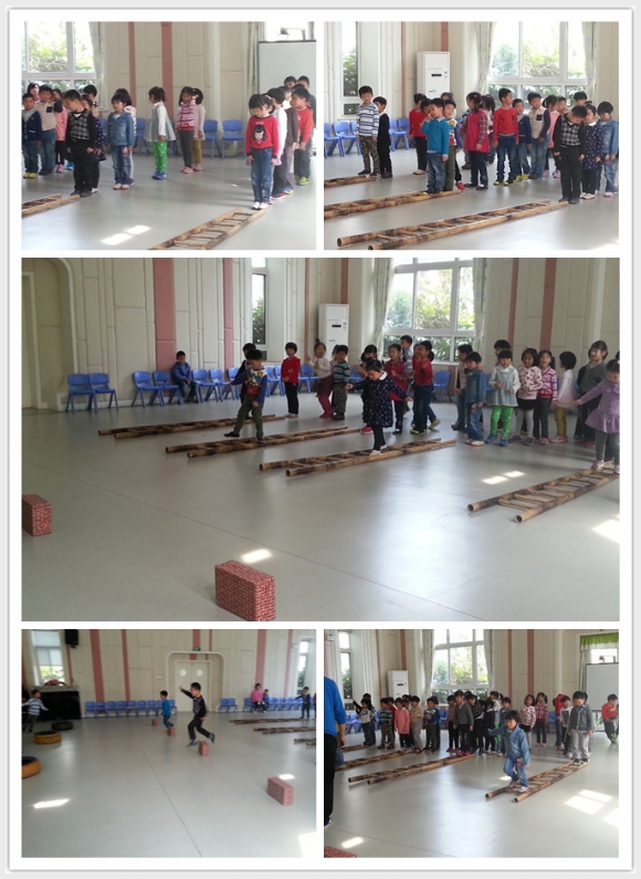 [中一]好玩的梯子 发布人:陈蓉 发布时间:2014/4/14 10:34:33 体育游戏是幼儿非常喜爱的活动,在活动中幼儿的手、脚和全身都能得到协调的发展。可是一般在室内开展的各种活动都比较注重动脑、动手,忽略对脚和身体其它部位的锻炼。为了加强幼儿全身锻炼,用梯子作为体育器械,让孩子们借助梯子探索多种玩法。