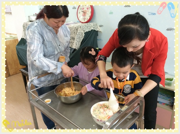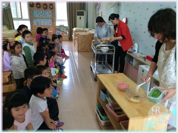 【中三】妈妈进课堂——好吃的土豆沙拉 发布人:王修月 发布时间:2014/5/13 15:59:44 根类美食有哪些呢?小朋友们都喜欢吃哪些呢?萝卜?山药?红薯?哦,。原来是土豆啊,。今天我们中三班就请来了几位妈妈。刚给我们现场制作根类美食。——土豆沙拉。妈妈们从家里带来了精心准备的食材:土豆、豌豆、火腿、胡萝卜。还有搅拌的食材:色拉酱 酸奶 千岛酱。我们做了智力抢答的游戏,听妈妈们介绍了制作土豆沙拉的流程。最后,也是我们最开心的时刻——开吃!土豆沙拉三种不同的口味,营养丰富,好吃极了~~ ![]() ![]() ![]() ![]()