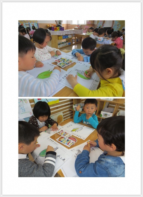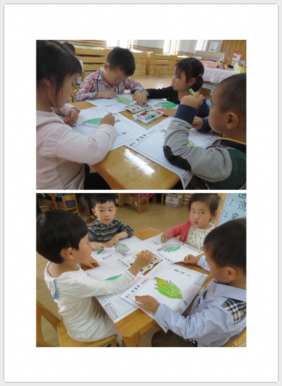 【小六班】 ————大玉米 发布人:晏海滨 发布时间:2014/5/14 16:00:15 大玉米 今天,小朋友学会了画玉米。来看看大家画画的样子,是多么认真。所以画出来的玉米也很好看。绿绿的叶子,里面包裹着金灿灿的大玉米,看上去肯定很有营养。小朋友的绘画本领进步了,画出来的作品也更加漂亮了。真是一群可爱的孩子。