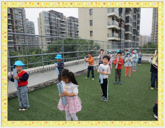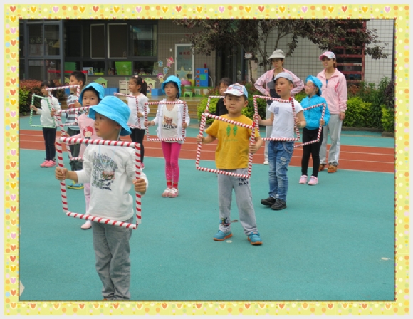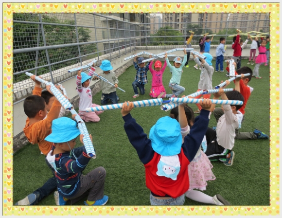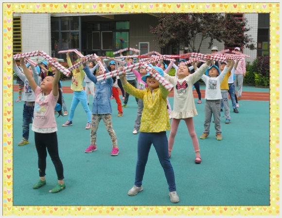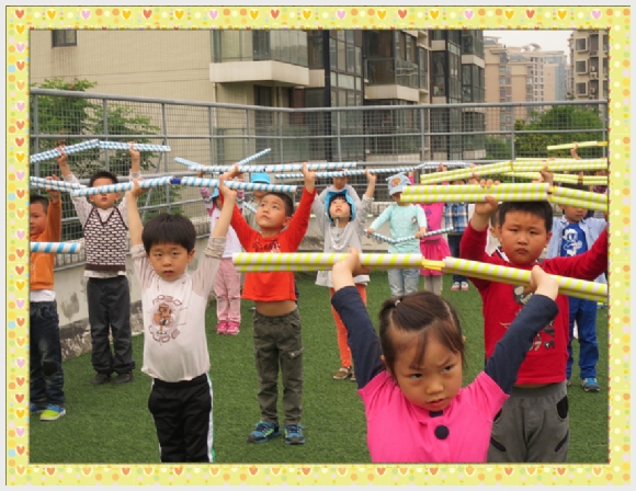 【大一班】学新操啦! 发布人:陈珊珊 发布时间:2014/5/15 10:59:39 我们开始学习新操啦!这次的新操可有意思啦! 用管子和橡皮筋做成的道具,再给它绕上彩色的即时贴,我们叫它管子操! 虽然动作有点难,但是我们一点都不怕,现在我们做的可好了,动作又标准又有力! 快来看看我们的精彩瞬间吧!是不是应该给我们鼓掌呢?