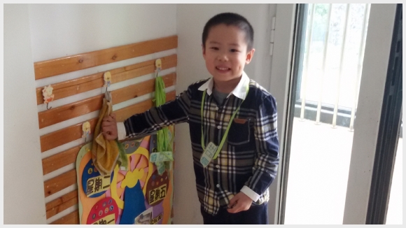 【中四班】今天我是值日生 发布人:钱薇 发布时间:2014/5/17 14:56:17 好消息!好消息!我们开展了值日生的制度,每天我们都会自己挂好挂牌,去打扫教室卫生,我爱中四班,我要让我们班级变得干干净净,整整齐齐。。。。。。