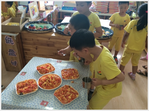 【中三】兰花草生活节,美食!我来啦 发布人:王修月 发布时间:2014/5/30 10:21:46 迎六一,庆端午。建邺区实验幼儿园兰花草生活节,开幕啦。为了迎接我们小朋友自己的节日。和感受中国传统节日——端午节 的气氛。幼儿园在每个班级都开放了小厨房。并且请来了可爱的妈妈们。和我们一起参与美食的制作。我们在本班只做了西红柿炒鸡蛋。还去了中班 小班 大班 品尝了各班的美食。我们吃到了美味的披萨,香香的萝卜丸子。甜甜的西瓜汁,还吃了 饺子 饼干 紫薯泥 烧卖 寿司 等等,好多好多的美食让我们的六一节过得有滋有味。开心极了。