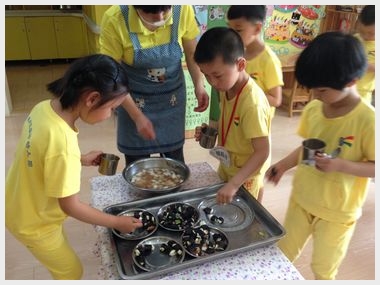 【大四班】 兰花草生活节之分享篇 发布人:伍婉君 发布时间:2014/5/30 16:33:17 在制作完美食之后,我们热情的邀请了别的班级的小朋友和我们进行了分享,哇,好好吃哦!在分享之后,我们去了其他班级也品尝了好多美味的食物。喜欢好吃的披萨、喜欢像冰淇淋一样的酸奶紫薯、喜欢爽口的土豆泥....每一种食物我们都忍不住去品尝,吃的饱饱的让我们觉得好快乐、好幸福啊! ![]() ![]() ![]() ![]()