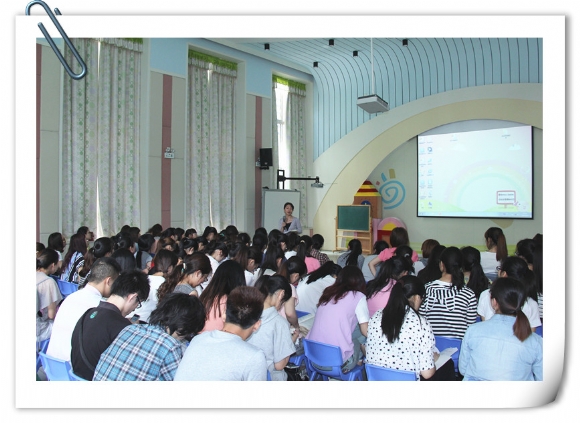 建实幼与省教院、区骨干班教师开展语言教学交流活动 发布人:张慧 发布时间:2014/6/11 10:15:44 2014年6月4日,建邺区实验幼儿园与江苏省第二师范学院的师生、建邺区幼儿园骨干教师培训班的教师们进行了语言教学活动的观摩和交流活动。 活动中,我园的伍婉君老师和张慧老师分别执教了中班语言活动《我给小鸡起名字》和大班语言活动《粽子里的故事》,精彩的环节设计、良好的师幼互动、趣味的语言游戏让现场的教学氛围显得生动、活泼,孩子们积极地参与在每一个语言游戏中,玩中学,语言表达能力和倾听能力均得到很大的提高和发展。教学活动结束后,两名教师结合教学现场中实际情况和存在问题进行说课和反思,最后,江苏省第二师范学院的余春瑛老师对两节语言活动进行了点评,提出教学活动环节设计新颖,层层深入,很好的完成了教学活动目标;语言游戏生动有趣味,幼儿积极性高,看似简单的游戏却蕴含的深刻的教育意义,值得推广。 教学活动的交流和研讨不仅能够让教师的专业素养得到提高,同时也能够拓展教师视野,有更加广阔的提升空间。