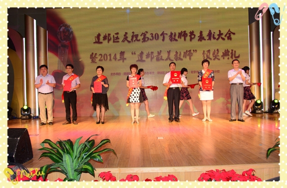 建实幼参加区庆祝教师节表彰大会 发布人:张慧 发布时间:2014/9/11 10:36:06 金秋,是收获的季节,更是感恩的季节!在这个满载收获和喜悦的金秋时节,第30个教师节踏着轻盈的脚步向我们走来。建邺区实验幼儿园的教师满怀欣喜的应邀参加建邺区庆祝第30个教师节表彰大会暨2014年“建邺最美教师”颁奖典礼。 表彰大会上,我园吴兴莉园长作为江苏省特级教师隆重上台接受南京市教育局工委书记刘莅的表彰和颁奖,现场氛围热烈,备受瞩目。陈玲副园长作为现场主持人,采访了最美教师的代表群。部分教师代表表演了舞蹈《心在说》,老师们用心在诠释、用爱在表达对教师这一职业的崇尚和热爱。同时我园还有多名教师也受到区教育局的表彰:陈玲老师被评为区教育系统师德标兵;张慧、印雅婷、陈蓉、顾雪琴老师被评为建邺区优秀教育工作者。在此向受表彰的老师表示祝贺!向建实幼的教职工团队表示感谢!因为有了大家的共同努力才造就了建实幼的辉煌成绩! 在这个充满了温馨和祝福的日子里,我园全体教职工必定大力弘扬爱岗敬业、关爱幼儿,勇于创新、奋发进取的拼搏精神,在幼儿园里演绎文明、和谐的新时代乐章。(信息员 张慧)