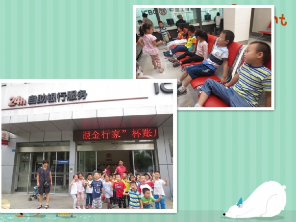我是社区活动之一,参观小银行。中五班秩序井然地参观了银行,大家对自动取款机都特别感兴趣。一路上都特别高兴,高唱着《爸爸去哪儿》。在此也特别感谢两位爸爸,保护着全班孩子的安全。 ◢ 网友评论