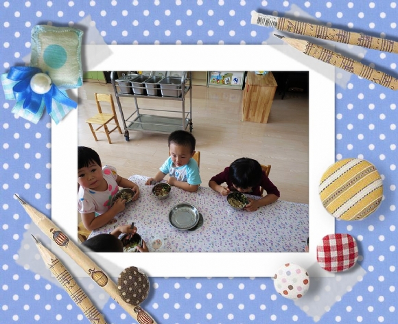 今天我们吃的是生菜和牛柳,老师告诉我们吃了生菜长的会更漂亮,吃了牛柳长的会更强壮。