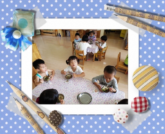爸爸、妈妈看看我们吃的多棒啊!我们在大口大口的吃饭呢!