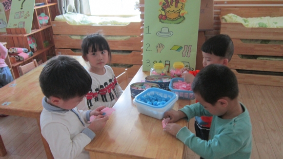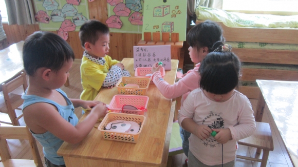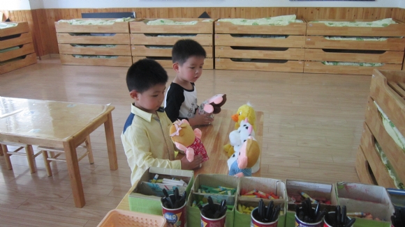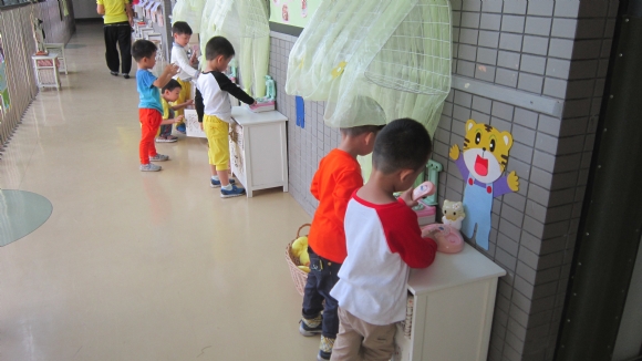 有的在玩手偶娃娃;有的在玩益智玩具。 ![]() ![]()
