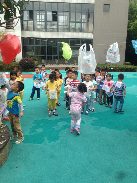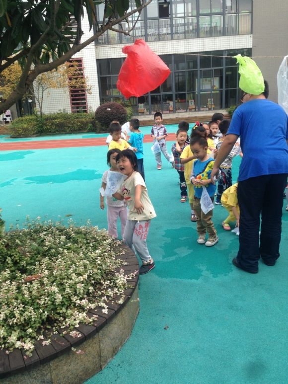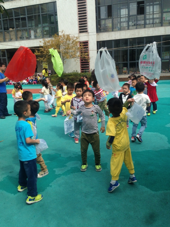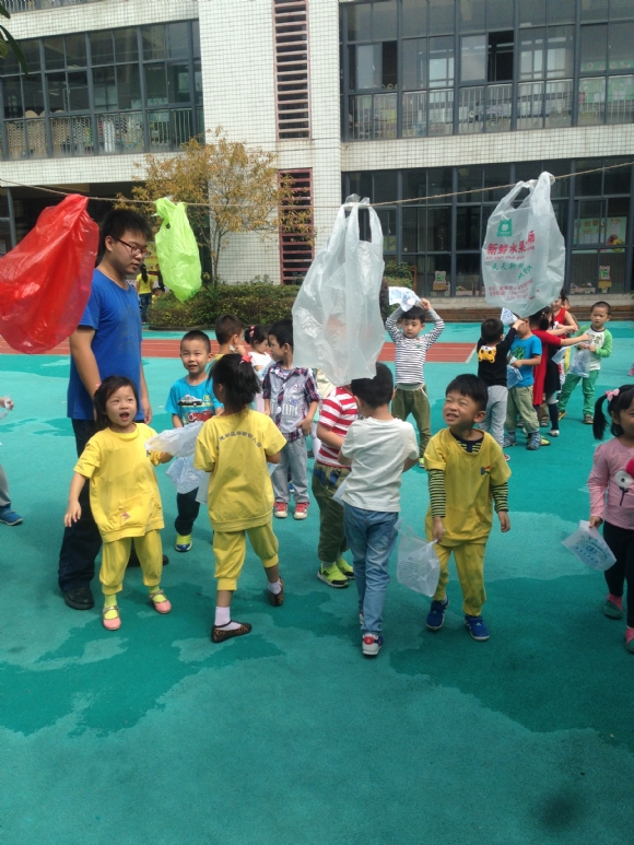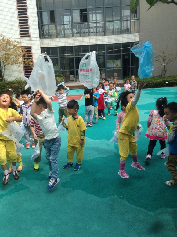 【中四班】袋子变变变 发布人:曹春 发布时间:2014/9/23 21:31:55 袋子不仅可以装东西,也可以大变身变成和我们一起做游戏的好伙伴呢~~大家一起来玩一玩呦~~ 袋子被栓到了高处,我们还是有办法摸到它的哈 这边袋子好像大一点,我不用跳应该能摸到吧~~嘿嘿 嘿!我一定要拍到你!