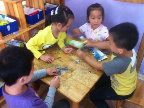 【大四班】制作手工地铁 发布人:钱薇 发布时间:2014/9/28 13:01:37 这个月我们班开展了地铁的主题活动,我们学会了很多和地铁有关的知识。我们设计的地铁是什么样的呢?“我的地铁要比飞机还快”“我的地铁要比宇宙飞船还大”“我的地铁要像火箭一样”,大家你一言我一语,拿起手中的材料,都变成了小小设计师!
