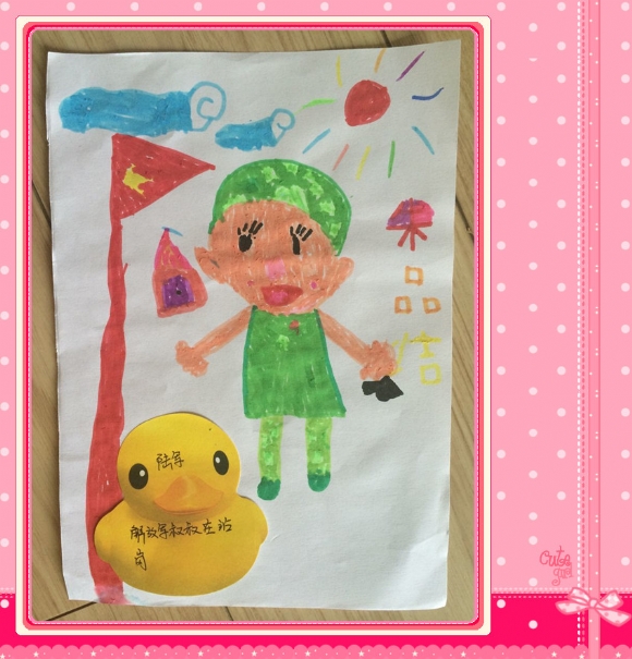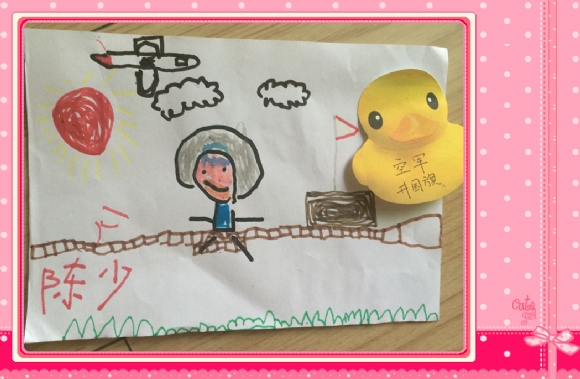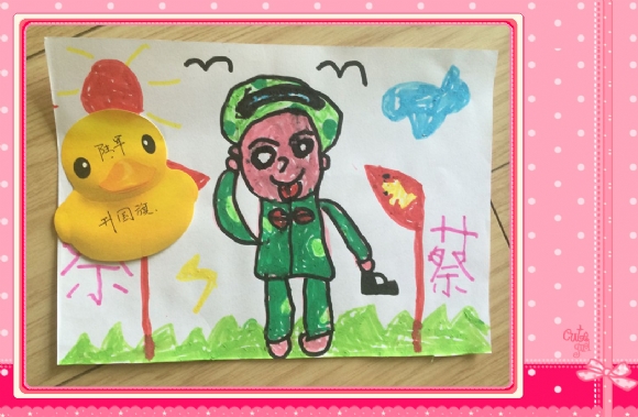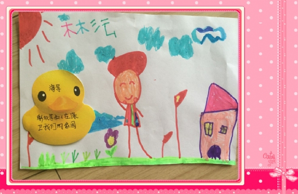 【大五班】我想当解放军 发布人:周娜娜 发布时间:2014/9/29 16:20:57 。。。快来看看我们的作品吧。。。 爸爸妈妈们看过来, 老师给我们的每一幅作品都写上了注释,方便大家理解我们画了什么。