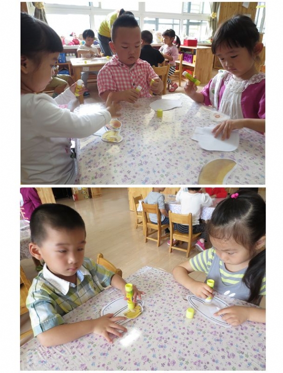 【小二班】 ————好吃的食物 发布人:晏海滨 发布时间:2014/10/9 16:24:40 好吃的食物 小朋友们看见他们平时最爱吃的食物,可开心啦。纷纷介绍自己最爱吃的食物。在老师的指导下,小朋友们自己动手把爱吃的装饰在盘子上,看上去多能干啊。 ![]() ![]() ![]()