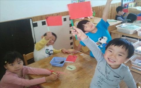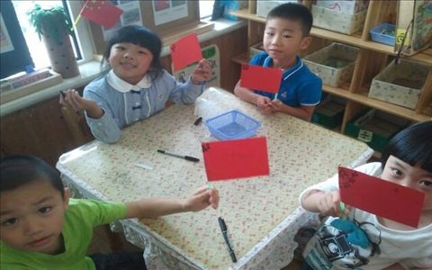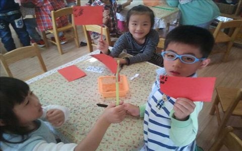 【大二班】红旗飘飘 发布人:伍婉君 发布时间:2014/10/10 10:36:38 看过了天安门的升国旗,我们都想像解放军叔叔那样帅气的升旗。我们不仅学会如何敬礼,还一起制作了五星红旗。我们的国旗是五星红旗,为左上角镶有五颗黄色五角星的红色旗帜,旗帜图案中的四颗小五角星环绕在一颗大五角星右侧呈半环形。我们一起来制作五星红旗吧!