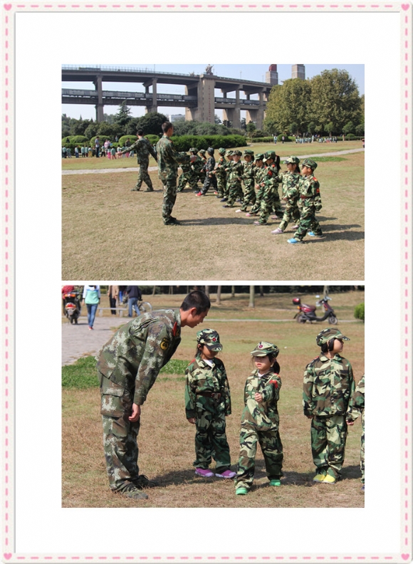 建实幼开展主题背景下的社会实践活动 发布人:张慧 发布时间:2014/10/16 8:27:24 近期,我们大班的主题活动《我是三军总司令》正如火如荼的开展着。10月14日上午,根据幼儿的兴趣和主题活动的需要,我们来到了南京大桥公园。那里有驻守的解放军叔叔,他们热情地接待了我们。宿舍里,整齐地摆放着解放军叔叔的物品;操场上,有解放军叔叔整齐划一的队列训练。小朋友们还和解放军叔叔进行了交谈,了解了许多解放军的故事。最后,小朋友们体验了一次解放军叔叔的队列训练。这次的军营之行让孩子们看到了解放军叔叔的勇敢,良好的习惯,遵守规则等品质。对解放军叔叔更加敬佩,对学习解放军叔叔充满了憧憬。(信息员 张慧)