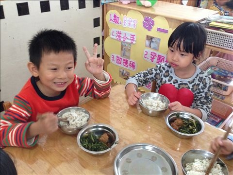 【大二班】和弟弟妹妹一起共进午餐 发布人:伍婉君 发布时间:2014/10/16 11:24:02 又到了午餐时间,今天我们吃的格外香。我们大二班的哥哥姐姐和中四班的弟弟妹妹一起共进午餐啦!哥哥姐姐带着弟弟妹妹一起去洗手,我们哥哥姐姐用的是筷子吃饭,弟弟妹妹们用的是勺子。我们表演给他们看怎么样用筷子一口菜一口饭的吃。弟弟妹妹们吃的也很棒哎,吃的又干净又快。我们结交了新朋友特别开心,都想快快吃完,和弟弟妹妹一起好好的聊一聊。真是愉快的午餐时光啊! ◢ 网友评论