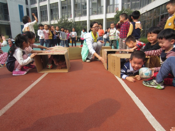 今天上午,我们当了一回小小机器人,穿上纸箱做的盔甲,钻过纸箱隧道,成功地把魔法球送到了安全地点,原来纸箱可以做成这么好玩的玩具啊! ◢ 网友评论