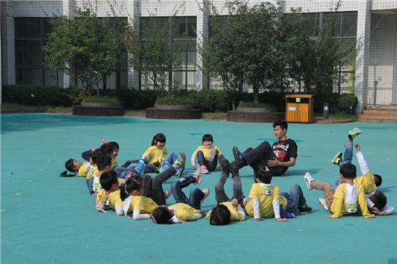 阳光健体组与浙江幼教同行进行教研活动 发布人:曹春 发布时间:2014/10/23 15:26:11 2014年10月23日,我园张慧老师、徐杨老师分别向大家展示了他们精心设计的大班体育活动《陆军野战营》和《大家一起跳》。体育领域专家薛菁华老师和浙江的同行们一起观摩了本次活动。 活动前,教师们对器材以及组织策略的创新进行了思考;活动中,教师们根据幼儿年龄特点,采用了灵活多变的活动方式,循序渐进、动静交替、由易到难、层层递进,充分调动了孩子的主动学习的能力;活动后,所有观摩的老师们聚焦问题,展开讨论,反思交流;最后,薛菁华老师对本次活动进行了点评并提出要求:在今后设计的活动中教师们不仅要对孩子们动作技能技巧方面进行锻炼,还需要对幼儿个性品质的发展有所关注。 通过本次活动,我园老师和外地参观学习的老师受益匪浅,并对体育教学理念有了更深刻的了解,为下次体育活动的有效开始起到了良好的促进作用。
