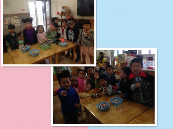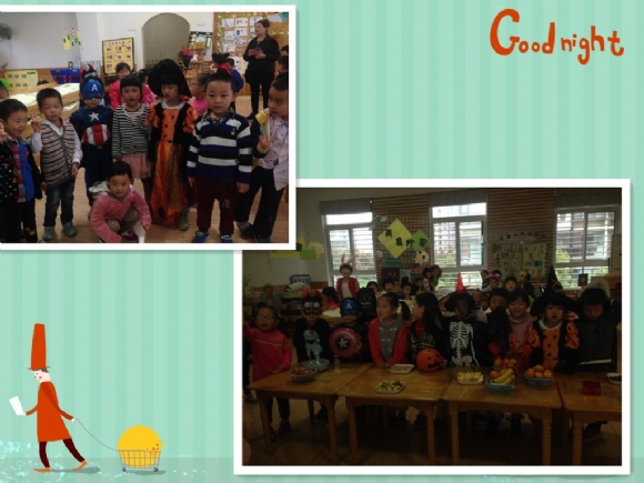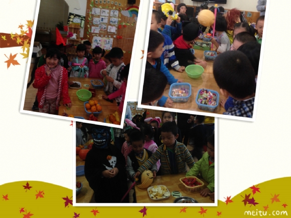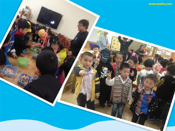 【中四班】万圣节来啦~~ 发布人:曹春 发布时间:2014/10/31 15:59:45 万圣节在每年的11月1日,是西方传统节日。然而现在大家都庆祝“万圣节前夕”(Halloween),也就是在10月31日庆祝。今天我们和大二班的哥哥姐姐们一起庆祝西方的“万圣节”,好开心哦~~