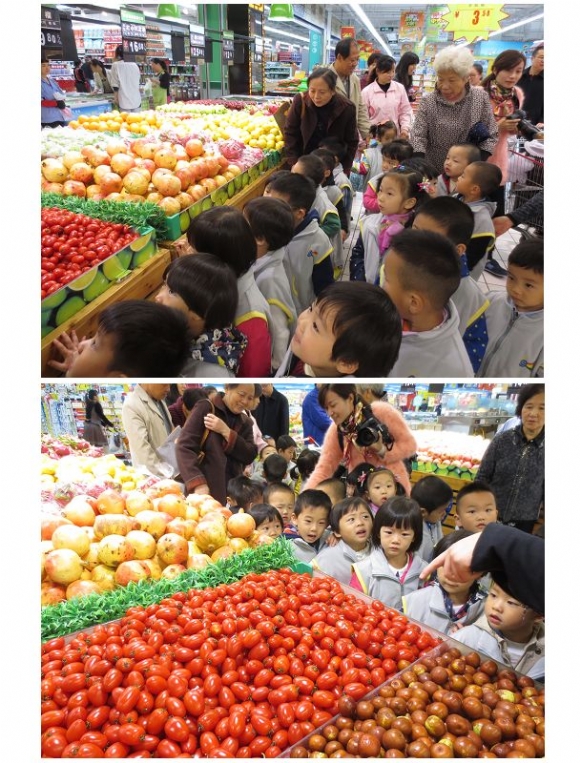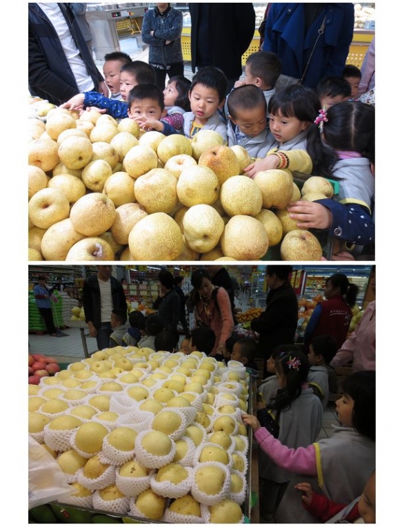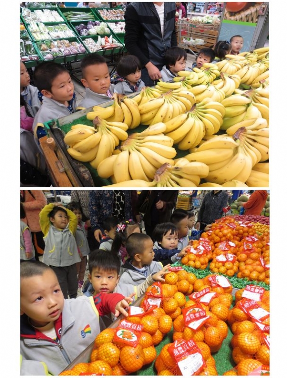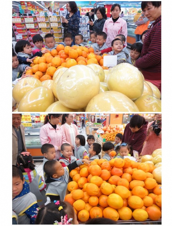 【小二班】去超市看水果咯! ————秋天的水果 发布人:晏海滨 发布时间:2014/11/3 15:17:21 秋天的水果 秋天是一个收获的季节,好多水果都在这时候成熟了。看,小朋友们和老师、爸爸妈妈一起去寻找秋天的水果了。走进超市,各种各样的水果吸引着小朋友。大家在一起,讨论着各种水果的知识。小朋友们高兴地喊着:我看到香蕉了、我看到桔子了。进入小区,高高的树上长满了金黄金黄的桔子,还有绿绿的木瓜。小朋友们看着秋天的水果,一个个可开心了。