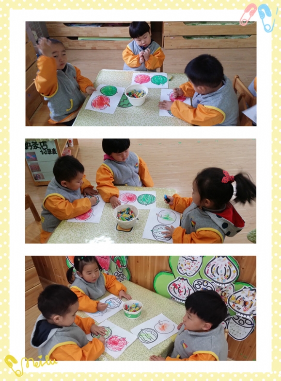 小朋友们都爱吃水果,今天,我们小六班的宝贝们就用自己手中的油画棒画出了一个个可爱的水果水宝宝。让我们一起来看一看吧!