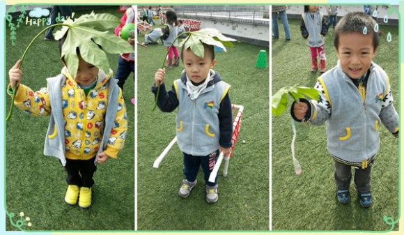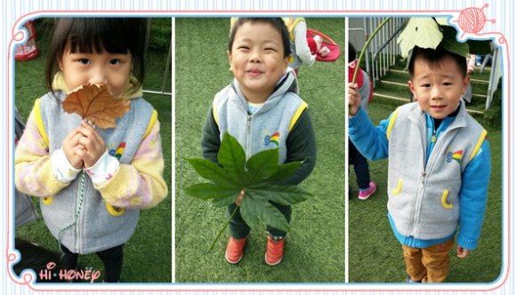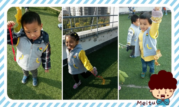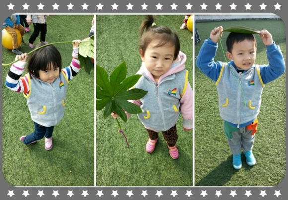 【小五班】我和树叶一起玩 发布人:王西西 发布时间:2014/11/21 15:22:14 星期六天,我们和爸爸妈妈一起收集了一片大树叶,还在树叶后面绑了一根长长的绳子,我们用这根长长的绳子拽着树叶宝宝快快的跑起来,树叶宝宝高高的飞起来了!最后,我们还和树叶宝宝一起摆了个美美的造型了呢!