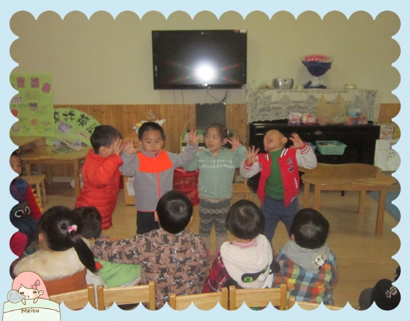 【小四班】手指转转转 发布人:张世佳 发布时间:2014/11/24 11:08:11 今天我们又学了新的手指游戏哦! 《手指转转转》 一根手指一根手指转转转,变成小牙刷,刷刷刷 两根手指两根手指转转转,变成小白兔,跳跳跳 三根手指三根手指转转转,变成小叉子,叉叉叉 四根手指四根手指转转转,变成小花猫,喵喵喵 五根手指五根手指转转转,变成大老虎,阿呜叫