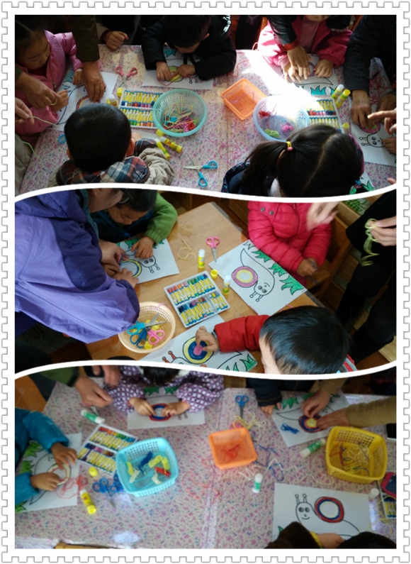 今天,我们举办了家长开放活动。我们在给蜗牛穿衣服呢!看,我们先用各色纸绳给蜗牛的壳穿上了漂亮的衣服,接着再用油画棒给蜗牛的身体穿上了漂亮的衣服。在与家长的合作中,我们的小蜗牛穿上了漂亮的衣服。快来瞧一瞧吧! ◢ 网友评论