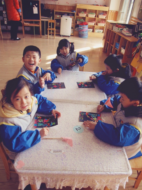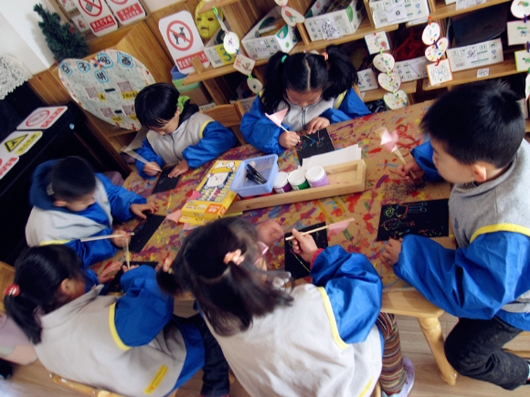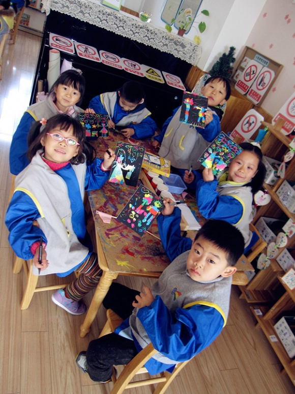 【大三班】美丽的刮画纸 发布人:王修月 发布时间:2014/12/12 13:26:09 继续上周的劳动主题,今天我们每人都领到一张神奇的刮画纸。我们用竹筷子在上面勾勒线条,描绘忙碌的劳动场景,分组讨论后,小朋友们开始作画,有的画值日生扫地,有的画在家中帮忙做家务。刮画纸挂出的线条缤纷多彩。结束后,大家纷纷举起手中的画纸,大方展示~我们想告诉大家的是:我们爱劳动!!