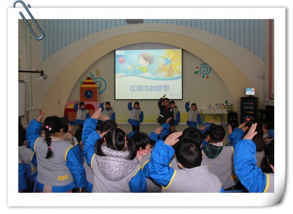 建实幼邀请银城小学学生来园开展特色幼小衔接活动 发布人:张慧 发布时间:2014/12/15 8:53:54 12月12日下午,建邺区实验幼儿园开展了一次生动的幼小衔接主题活动,今天的授课老师很特别,幼儿园特地邀请到曾经的毕业生目前在银城小学就读二年级的钱景元同学担任小讲师! 别看钱景元同学才上二年级,可组织起活动来特别认真负责!他精心设计了一场题为“红领巾的梦想”主题演说。以故事形式生动地向大班的小朋友介绍红领巾的意义,带领弟弟妹妹认识队旗队徽,和弟弟妹妹分享银城小学少先队的故事,激发了大班小朋友想成为一名小学生的愿望,感受做一名有梦想的少先队员的光荣!
