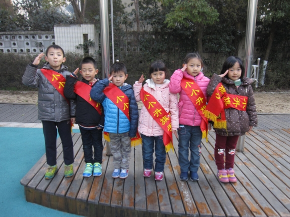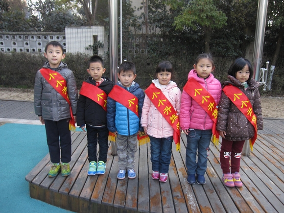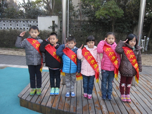 【大三班】我向国旗敬个礼 发布人:王修月 发布时间:2014/12/24 10:21:23 “太阳当空照,花儿对我笑,小鸟说,早早早。为什么你那么早就到学校了?” “我表现好,不迟到,遵守纪律,懂礼貌。”“老师夸我是好宝宝,小朋友们选我当小小升旗手~~ 周一是我们班升旗的日子。 下面为您介绍我们班的小小升旗手:刘达 刘晟宇 望子集 周锦程 卢雅心 李一晨。我们要向他们学习,只要有进步的小朋友都有机会争当升旗手哦,大家一起加油哦!