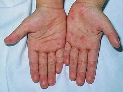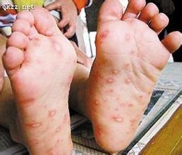 儿童手足口病 发布人:纪毅 发布时间:2014/12/31 16:55:01 1.病因:病毒感染 2.传染源:病人及隐性感染者 传播途径:直接接触传染源或通过鼻咽分泌物、粪便、飞沫传播;夏秋季多发。 易感者:4岁以下儿童易感; 3.临床表现 口痛、厌食、低热。 口腔可见小疱疹或溃疡,舌、颊粘膜、硬腭等处为多,偶尔波及牙龈、软腭、扁桃体和咽部。无局部淋巴结肿大。 手、足掌背可见几个到几十个斑丘疹,后转为疱疹、比水痘疹小.2-3天后吸收,不留痂。也可见于臂,腿及臀部,躯干少见。 病程短,症状轻。 对待手足口病应以预防为主,主要措施包括:发现患儿应立即隔离治疗至皮疹消退;培养孩子良好的卫生习惯,如饭前便后洗手;打喷嚏要转向无人处,谈话时要保持一定的距离,避免飞沫喷到他人脸上;幼儿园及家里要经常开窗通风,保持整洁干净;瓜果一定要洗净、削皮;食品一定要高温消毒,不吃易变质的食品。同时加强孩子的营养,让孩子注意休息,避免其被日光暴晒,防止其过度疲劳而降低抵抗力。