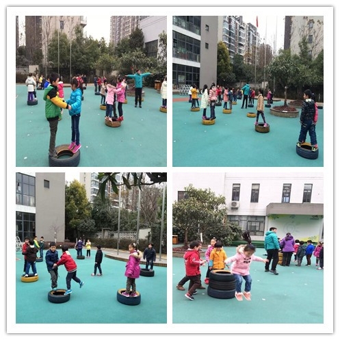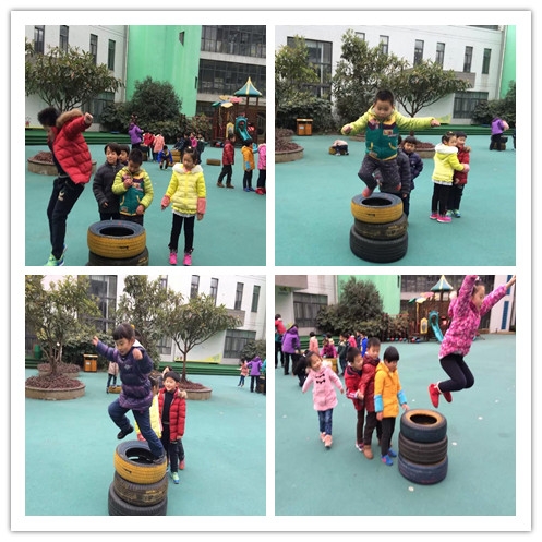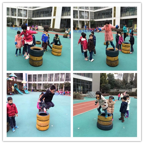 运动宝贝:征服大轮胎 发布人:张寅韬 发布时间:2015/1/13 12:24:20 大轮胎也是我们锻炼的器材,瞧瞧我们今天拿轮胎怎么运动身体: 原来是从轮胎上跳下,锻炼我们的胆量和勇气,也考验同伴间的互相合作:轮胎是大家共同垒起来的,跳下后轮胎发生位移,要及时调整垒放整齐保护下一位挑战者。