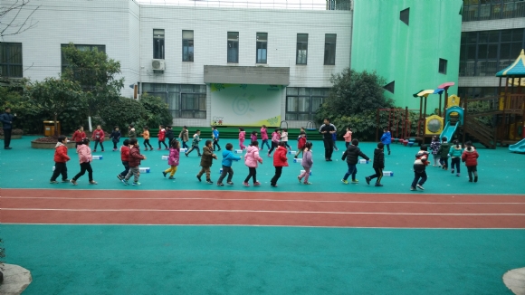 围成大圆跑,一个跟着一个,不掉队。