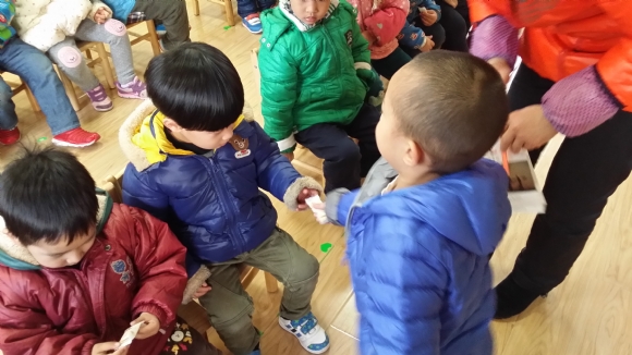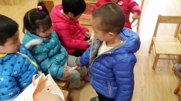 【小六】好宝宝会分享 发布人:高洁英明 发布时间:2015/1/20 16:40:31 今天,我们班的大宝从家里带来了他之前旅游时特地买回来的特产。过来分享与班上的小朋友们分享这份喜悦。他一个一个小朋友的分发礼物,收到礼物的小朋友也大声的对大宝说“谢谢!”。我们小六班的宝宝们都是最棒的!