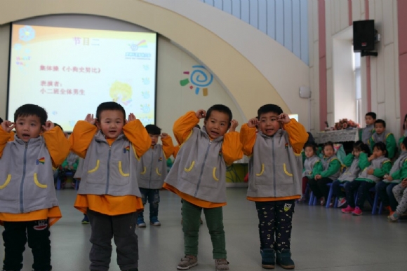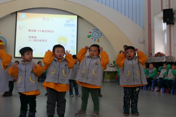 ”我是小狗史努比,头戴帽子真神气,两只胳膊真有力,抓起骨头举一举………“随着熟悉的早操音乐响起,全体男生为家长们带来了精彩的节目”早操表演“。或许是看到了台下坐着的爸爸、妈妈,小朋友们做早操的时候格外的有精神,每个动作都做得非常到位。看着孩子们认真做操的模样,台下的家长们也用热烈的掌声向他们表示了祝贺。无论是家长还是孩子此时的脸上都露出了开心的笑容。
