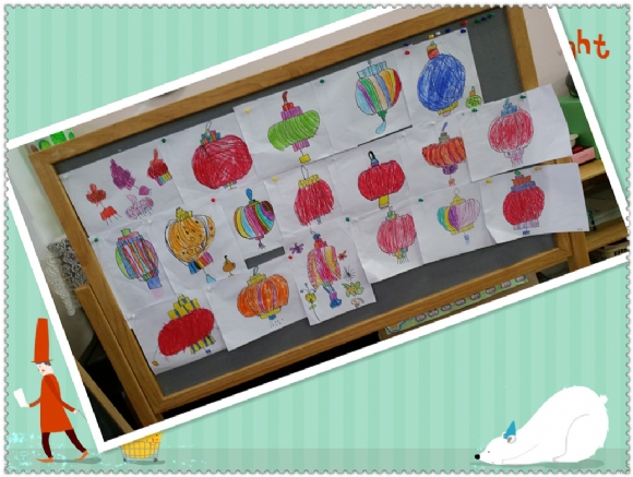 今天,我们画灯笼了。瞧,我们先用黑色的勾线笔画好灯笼,然后再用油画棒给它涂上颜色。快来看看我们的作品吧! ◢ 网友评论