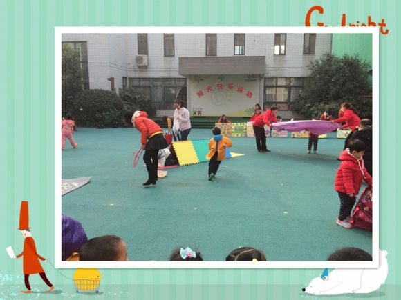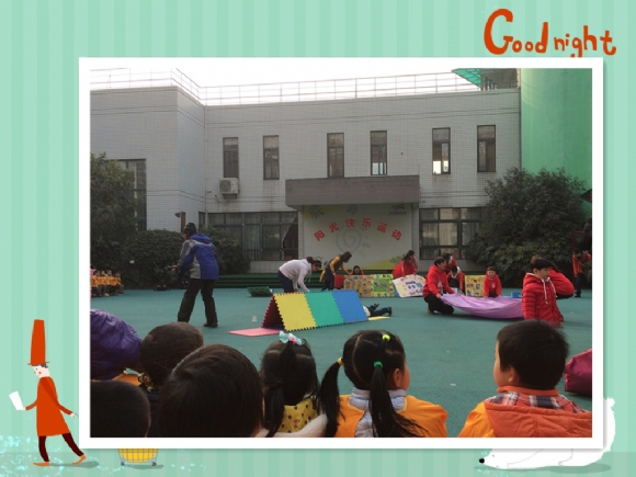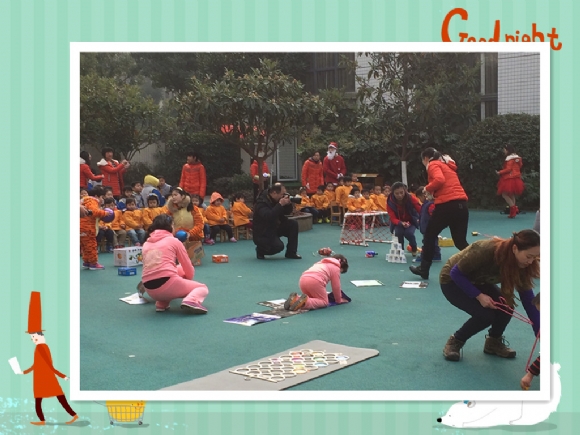 我们班展示的是我和小桶做游戏,除此之外还有床单大作战、滚铁环等各种体育游戏呢~~~