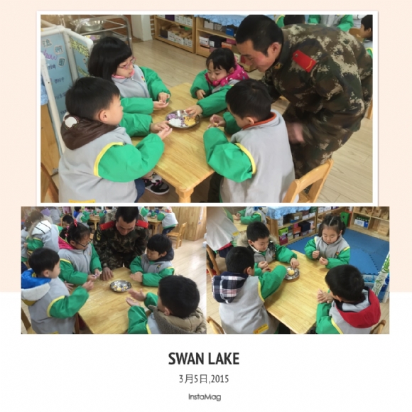 【中四班】学雷锋,庆元宵 发布人:吴旋 发布时间:2015/3/5 15:20:59 2015年3月5日,今天既是学雷锋纪念日又是中国传统佳节——元宵节,我们开展了“学雷锋、庆元宵”的庆祝活动,我们诚挚的邀请了武警叔叔和孩子们共度佳节。