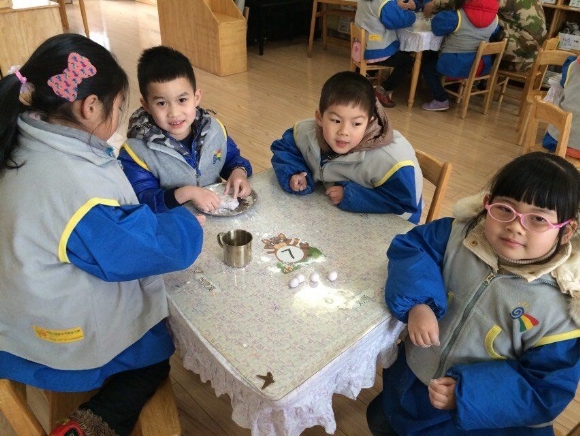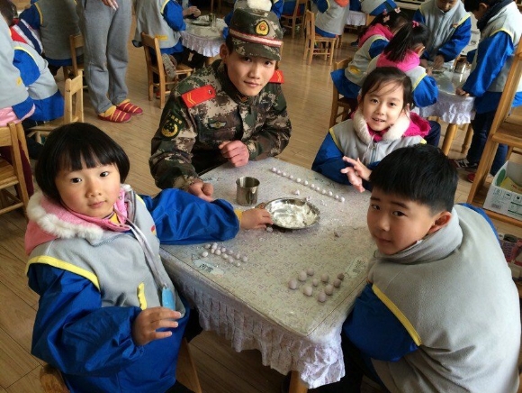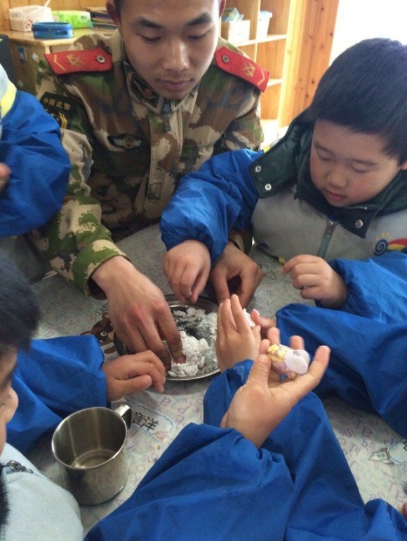 【大三班】和“雷锋叔叔”一起搓元宵 发布人:王修月 发布时间:2015/3/5 15:35:42 今天是农历正月十五,是传统的小年(元宵节)同样今天也是 3月5日 学雷锋日,幼儿园里请来了武警战士为我们表演了精彩军体拳和升旗仪式,接着我们邀请叔叔们进班和我们共同庆祝元宵佳节。 我们都是大班的孩子了,我们会自己动手和面,揉成面团,再搓成圆圆的汤圆。瞧我们做的多认真啊,不一会儿大大小小的汤圆就慢慢的装了一盘子,下午食堂的叔叔阿姨们把我们做的元宵加入红豆和酒粮,变成了一碗热腾腾的元宵羹。美味极了!