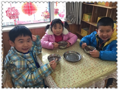 【大二班】分享美味元宵 发布人:伍婉君 发布时间:2015/3/5 16:52:06 元宵好,元宵妙。 元宵好吃呱呱叫。 上午我们自己亲手制作的元宵新鲜出锅啦,有玉米口味,紫薯口味。我们迫不及待的想要品尝一下呢。快来和我们一起吃元宵吧! 泡泡:“能吃到甜甜的东西很幸福啊。” ◢ 网友评论