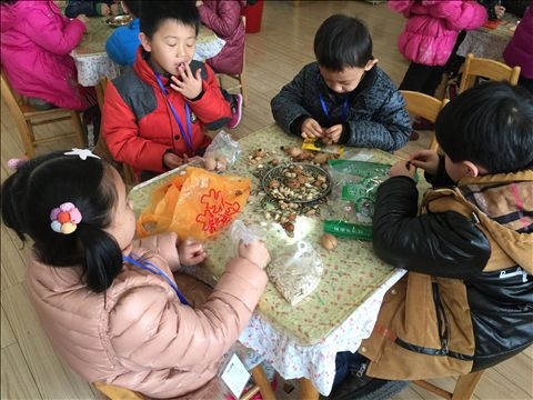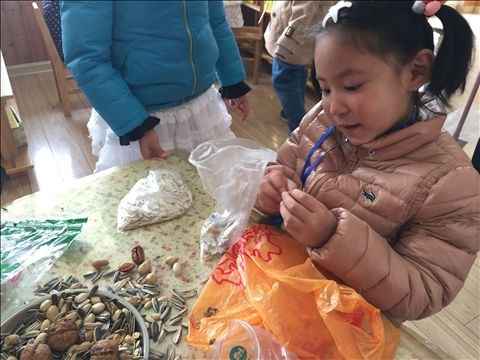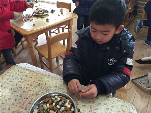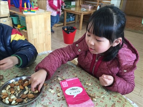 【大二班】硬硬的壳,香香的肉 发布人:伍婉君 发布时间:2015/3/11 12:13:57 先给你们猜个谜语吧:“有个黑宝宝,从来不开口,要是一开口。没准掉舌头”你猜到答案没有啊?谜底:西瓜子。 今天我们一起带来了很多的坚果:有核桃、松子、瓜子、花生、夏威夷果、碧根果等。他们都有硬硬的壳,香香的肉,我们还一起品尝了这些好吃的坚果。硬硬的壳好难打开啊,让我们一起来试试看吧,我会用手剥开,我会用牙咬开。我们很厉害吧!一起来分享我们的坚果吧。 ◢ 网友评论