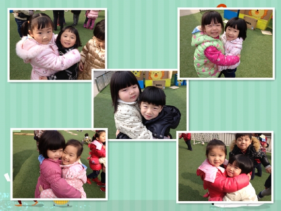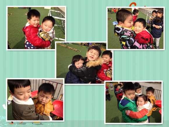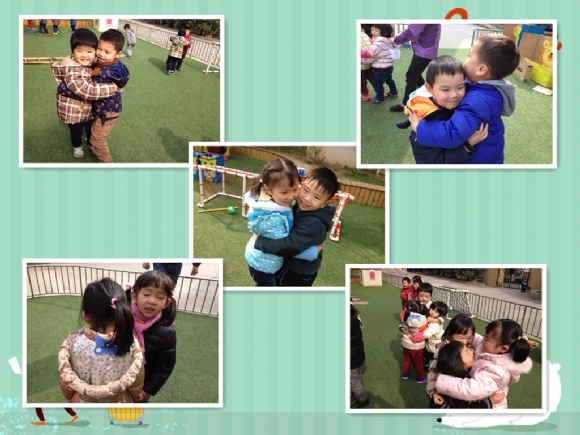 【小七班】快乐抱一抱~~~ 发布人:陈珊珊 发布时间:2015/3/11 13:46:46 拥抱是件让人开心、快乐的事情~~~ 除了和爸爸妈妈拥抱之外,还可以和谁拥抱呢? 每个人都有自己的好朋友,快来和自己的好朋友抱一抱吧~~~ 看~~~我们玩得多开心啊~~~