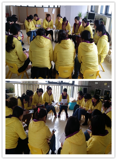 区域游戏教研组活动一 ————主题区域活动与角色游戏 发布人:于阗 发布时间:2015/3/18 8:26:15 3月17日,区域游戏教研组的教研活动拉开帷幕。组员们积极响应,早早的来到活动现场,在组长的带领下,交流了本学期的教研活动计划。 本学期在阳光课程的引领下,我们将对主题区域游戏的创设更进一步的进行探索研究。还将结合幼儿的实际需要和经验水平,开展丰富多彩的角色游戏。 “游戏,让幼儿想自己所想,做自己想做。”教师做幼儿游戏的观察者、参与者、指导者、评价者······学习了相关的经验文章,各位组员对班级游戏都有了重新认识与思考。