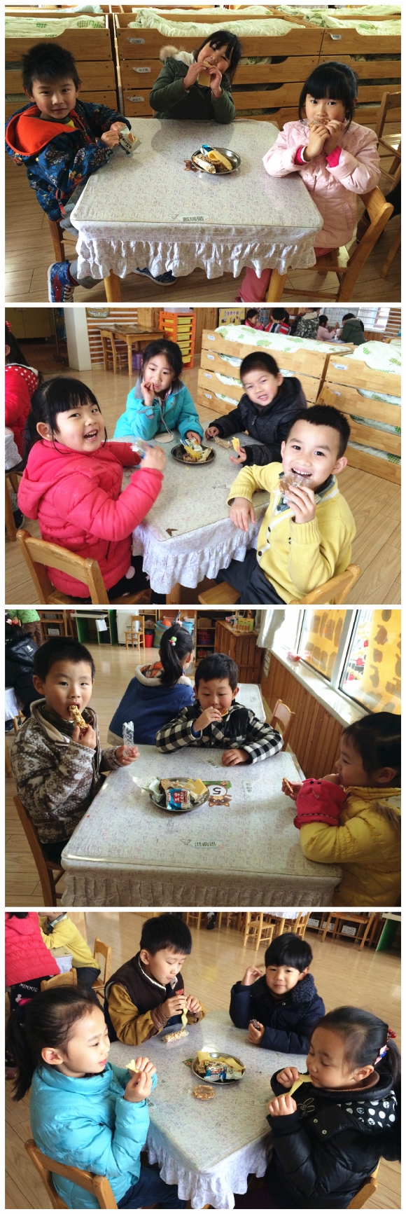 【大三班】粗粮小吃店 发布人:王修月 发布时间:2015/3/19 14:52:59 经过春节大鱼大肉的洗礼,小朋友们开始懂得平衡膳食,均衡饮食。为了让孩子们体会到粗粮在日常饮食中的重要性,我们特别开展了健康活动——粗粮小吃店,感谢爸爸妈妈的配合!前期孩子们就带来了在家里收集到的粗粮食品。例如:紫米糕,糙米卷,粗粮饼干 杂粮煎饼 全麦面包 玉米酥 等等。当我们准备好分给每组品尝时,孩子们都露出了开心的笑脸,粗粮可以帮我们锻炼牙齿,保持口腔清洁还能平衡膳食,帮助肠道运动,防止便秘。吃粗粮的好处真大啊!小朋友们在品尝之后说道,虽然吃在嘴里糙糙的,但是远比垃圾食品健康,都表示愿意和爱吃粗粮食品了。你们说,大三班的孩子棒不棒!