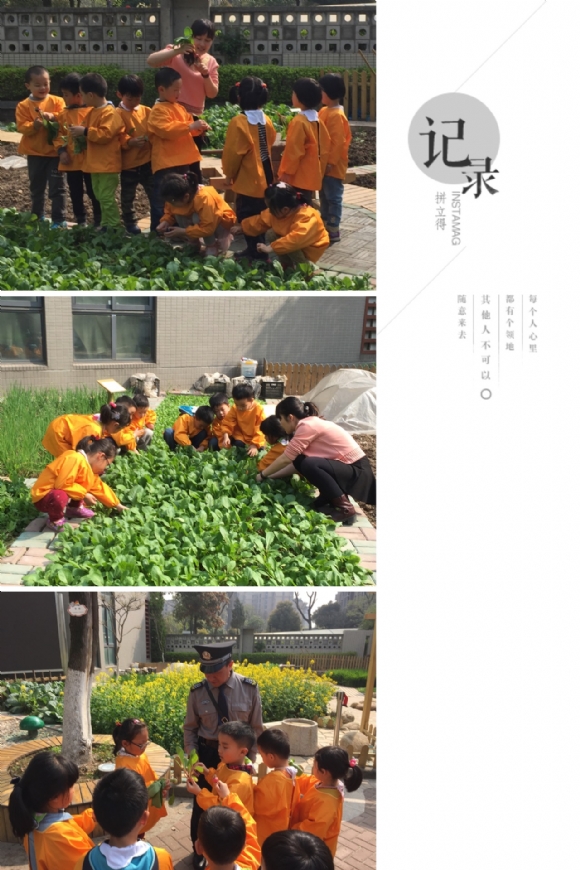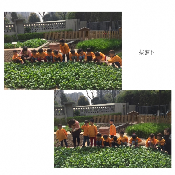 【中四班】嘿哟嘿哟~拔萝卜 发布人:吴旋 发布时间:2015/3/31 13:23:01 今天阳光明媚,我们跟着老师一起去菜园地里拔萝卜! 你看我拔的这个萝卜大吗?告诉你们哦~这个叫洋花萝卜!你们猜猜它的叶子可以吃吗? 答对了!是可以吃的~它的叶子可以用来炒菜呢! 洋花萝卜可以用来煲汤、凉拌,我们今天准备做凉拌洋花萝卜!