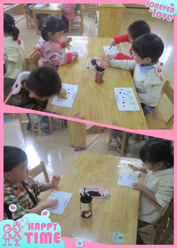 【小四班】小蝌蚪 发布人:张世佳 发布时间:2015/4/2 10:17:43 一群可爱的小蝌蚪宝宝来啦!小四班的宝宝们天天围着蝌蚪宝宝们,观察着、议论着,今天我们就来画一画蝌蚪宝宝吧!小小手指蘸一蘸,小蝌蚪穿黑衣裳,小小画笔添一笔,尾巴摇来又摇去!